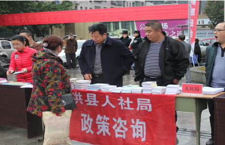本网讯(戴苏明 邓开华):今年12月4日是第二个国家宪法日,也是第15个全国法制宣传日。为深入贯彻党的十八大和十八届三中、四中、五中全会精神,认真落实“四个全面”的战略布局,扎实推进依法治县工作的开展, 12月4日上午9时,县人社局在巡场镇双三广场设立了宣传咨询台,开展现场宣传服务,重点对《劳动合同法》、《社会保险法》、《劳动争议调解仲裁法》《工伤保险条例》等涉及人力资源社会保障法律法规进行了宣传,现场为群众解答了有关社会保险、劳动合同、劳动争议等法律问题,发放了政策传单1500余份。通过这次国家宪法日宣传活动,使广大群众对《劳动法》《社会保险法》等法律知识和相关业务有了更深的了解,提高了民众的法律意识,取得了良好的社会宣传效果。