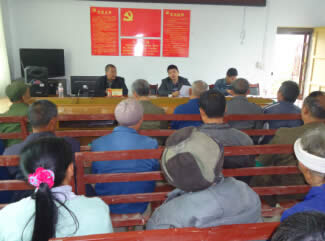 图一为:人社局慰问组一行为计生“三结合”户开展培训