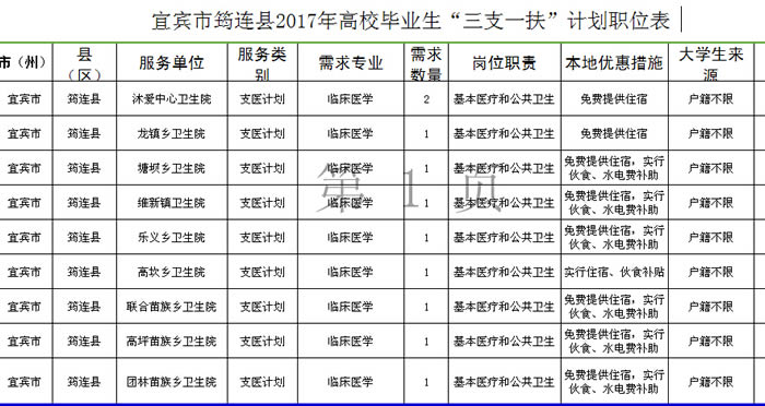 附件:宜宾市筠连县2017年高校毕业生“三支一扶”计划职位表