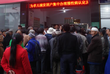 图为:珙县医保局组织专家到孝儿镇为建卡贫困户认定门诊特殊疾病现场