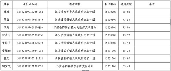 宜宾市江安县2017年公开招募三支一扶计划拟招募人员名单