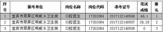 根据《宜宾市事业单位2017年第二次公开考试招聘工作人员公告》规定,现将宜宾市翠屏区明威乡卫生院口腔医生招聘岗位(岗位代码17202084)进入资格审查人员(阴影部分)名单(见附件)补充公告如下: