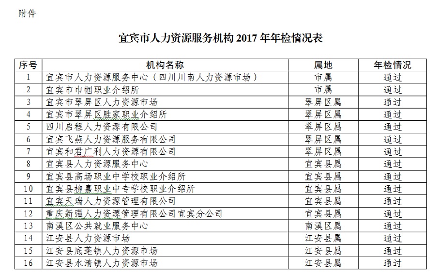 附件:宜宾市人力资源服务机构2017年年检情况表