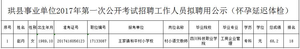 附件:珙县事业单位2017年第一次公开考试招聘工作人员拟聘用公示(怀孕延迟体检)