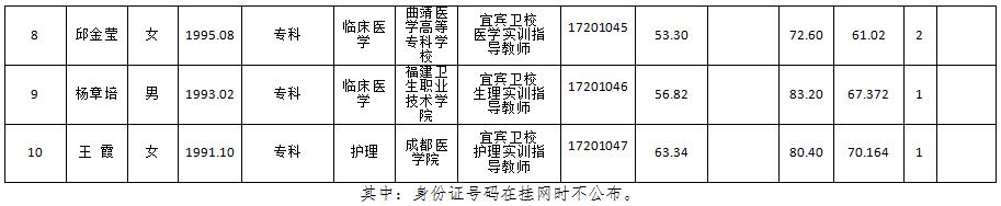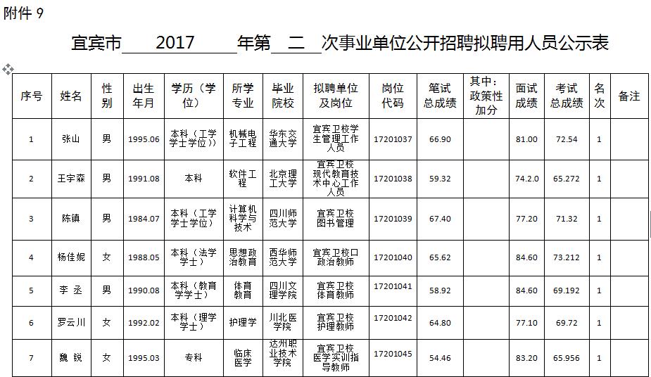 附:宜宾市事业单位2017年第二次公开考试招聘拟聘用人员公示表
