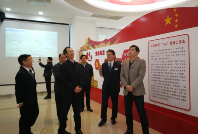 在市人社局党建工作汇报会上,调研组一行观看了《市人社局党组“1+4”党建工作法》专题片,听取了关于机关党建工作专题汇报。谢富江书记首先汇报了我党建工作基本情况、特色亮点工作及问题建议。聂洪康局长在汇报时指出,市人社局党组“1+4”党建工作法的核心是发挥党组一个政治统揽功能,着重是解决认识、责任、保障以及领导履职等方面问题;强化思想引领主要是通过政治导向、思想引领、行为规范,弘扬正能量、反对歪风邪气,解决能干什么不能干什么问题;强化目标绩效考核是将完成工作业绩、争当先进作为党建工作重要目标,将考核作为重要指挥棒,在全局营造比学赶帮超、人人争当先进的浓厚氛围;强化民生民本是牢固树立以人民为中心的思想,以作风效能建设为抓手,以全省人社公共服务体系全域示范建设为载体,通过“1+3”服务方式(即传统大厅临柜办理+手机、电脑、自助服务终端办理),理清服务项目、再造服务流程、提升服务质量、提高社会满意度,实现“5A”目标,即任何人在任何时间、任何地点,采取任何方式,都可以办理承诺的任何人社业务;强化廉洁示范带动是通过制定《重大项目业务资金、经费支出评审监督办法》《重要事项监督管理办法》防范廉政风险。