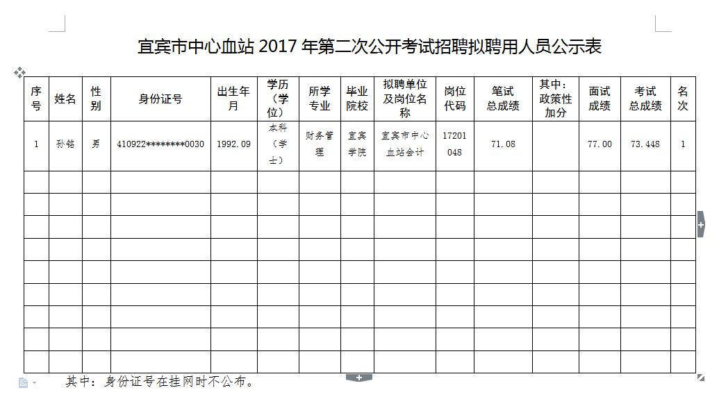 附:宜宾市中心血站2017年第二次公开考试招聘拟聘用人员公示表