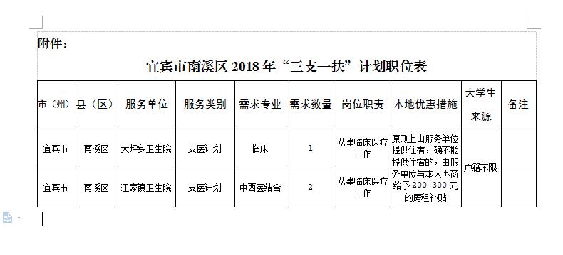 附件:宜宾市南溪区2018年“三支一扶”计划职位表